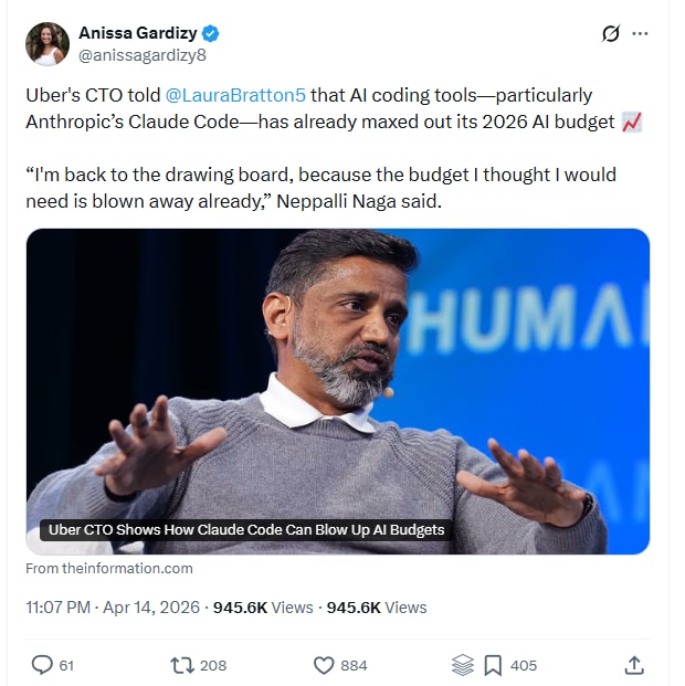 Uber's rapid move to AI-driven coding is delivering speed, but it is also pushing costs far beyond what the company had planned. CTO Praveen Neppalli Naga says tools like Claude Code have already forced a rethink of its AI budget.